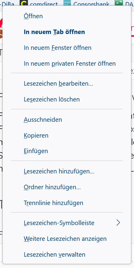 Aus pragmatischen Gründen belasse ich es jetzt so, mit der Anpassung des Dropdowns der Lesezeichen-Symbolleiste.