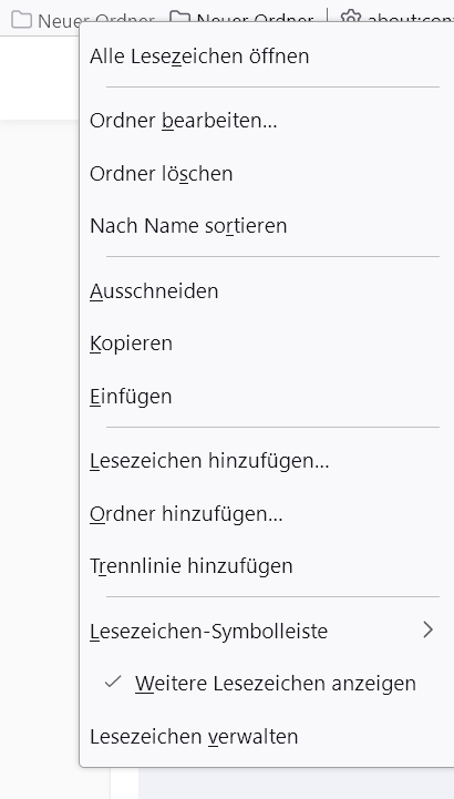 Breite Dropdownmenü der Lesezeichen-Symbolleiste