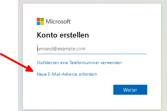 Damit ich die Datei bei Microsoft abholen kann habe ich nun extra für diesen Zweck ein Microsoft Konto erstellt.