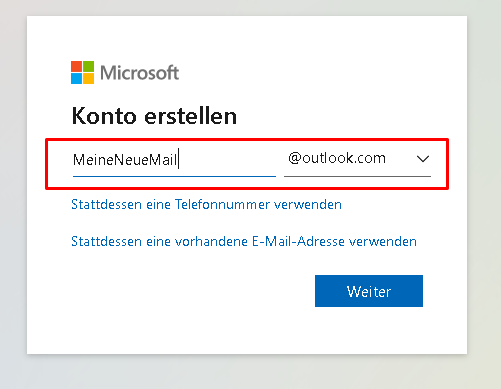 Ich habe also eine Mail-Adresse erstellt, denn das wurde angeboten. Auf diese Weise musste ich keine bestehende Mail Adresse angeben.
