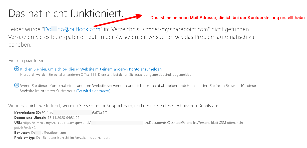 Habe ich jetzt ein Microsoft Konto und kann trotzdem das Dokument nicht abrufen?