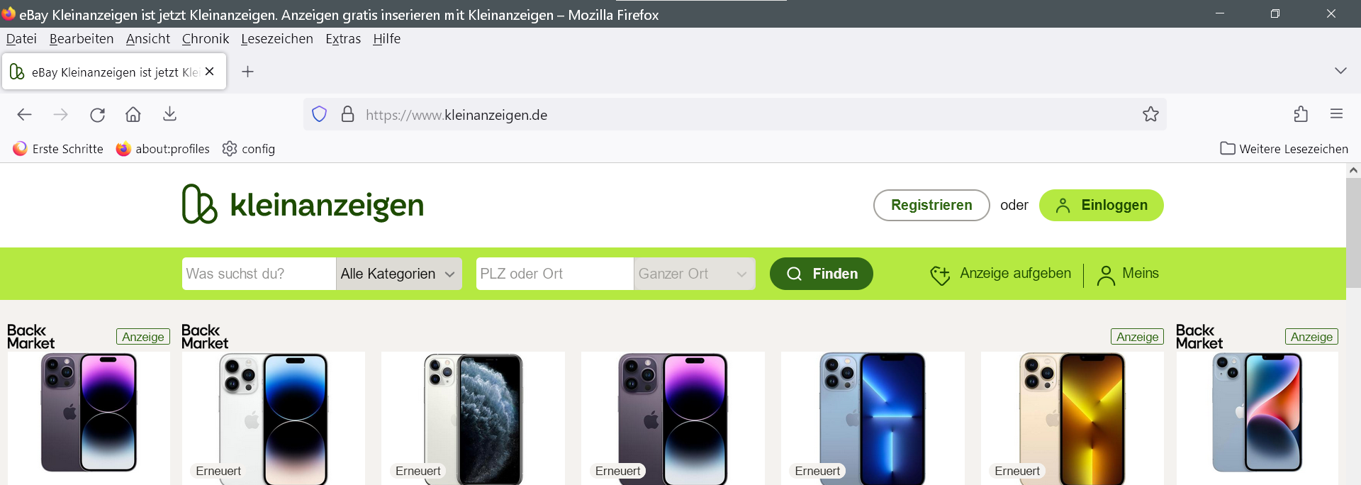 Die von mir genannten "Problemseiten", sollten lediglich als Beispiel dienen, an welchen Stellen FF nicht wie erwartet funktioniert. Um es konkret an der Seite "Kleinanzeigen.de" festzumachen. Hier ein Screenshot, wie die Seite bei mir in FF aussieht und welche Felder nicht funtionieren. Auf dieser Seite geht es um die beiden "Buttons/Drop-Down-Felder" oben links ("Alle Kategorien" bzw. die graue Fläche neben "PLZ oder Ort". Dort sollte beim ersten Aufrud der Seite "Ganzer Ort" stehen.) Bei keinem der beiden Felder funktioniert ein entsprechender Klick darauf. Eine Selektion der gewünschten Kategorie ist nur über den linken Frame mit den dort gelisteten Kategorien möglich.