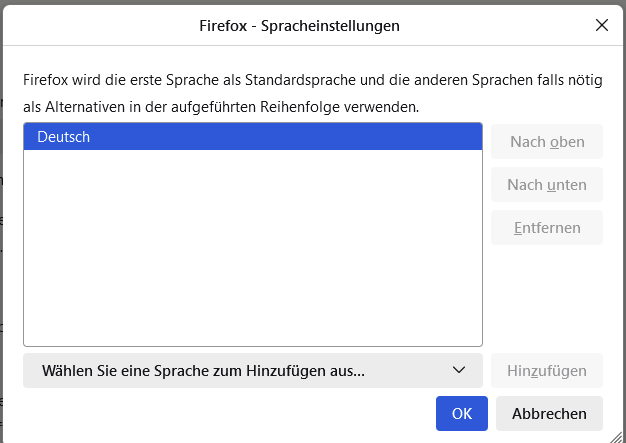 Der Profile-Manager war auf JEDER Installation, ob Windows 10 oder 11, egal, bei Windows wurde schon vor der Anlieferung von hp oder dell alles auf Deutsch eingestellt, oder von mir aus durfte ich nagelneuinstallieren, alles auf Deutsch, trotzdem, der profile-manager war aber auf JEDER Installation, wenn Firefox oder Thunderbird nachträglich aus dem MS Store installiert wurden, IMMER auf US-Englisch. US, weil ich davon ausgehe, dass es die Schuld von MS Store ist bzw. seinen Betreibern, dass dann ein US-Englisches Wörterbuch im neuen Firefox erschien, jetzt nur im neuen Profil, wenn es angelegt wird, zu aller Installationen.