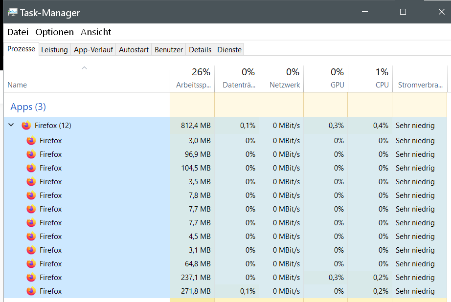 Im Firefox sind etwa 10-15 Fenster offen (den ganzen Tag) dort werden die Daten immer