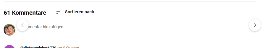 seit wenigen Tagen sind mir auf YouTube zwei seltsame Pfeilbuttons über der Kommentarspalte aufgefallen, die keinerlei Funktion haben und sich links und rechts mit dem Eingabefeld für eigene Kommentare überschneiden. Komischerweise sind die nicht immer da. Bastelt da YouTube an etwas herum?