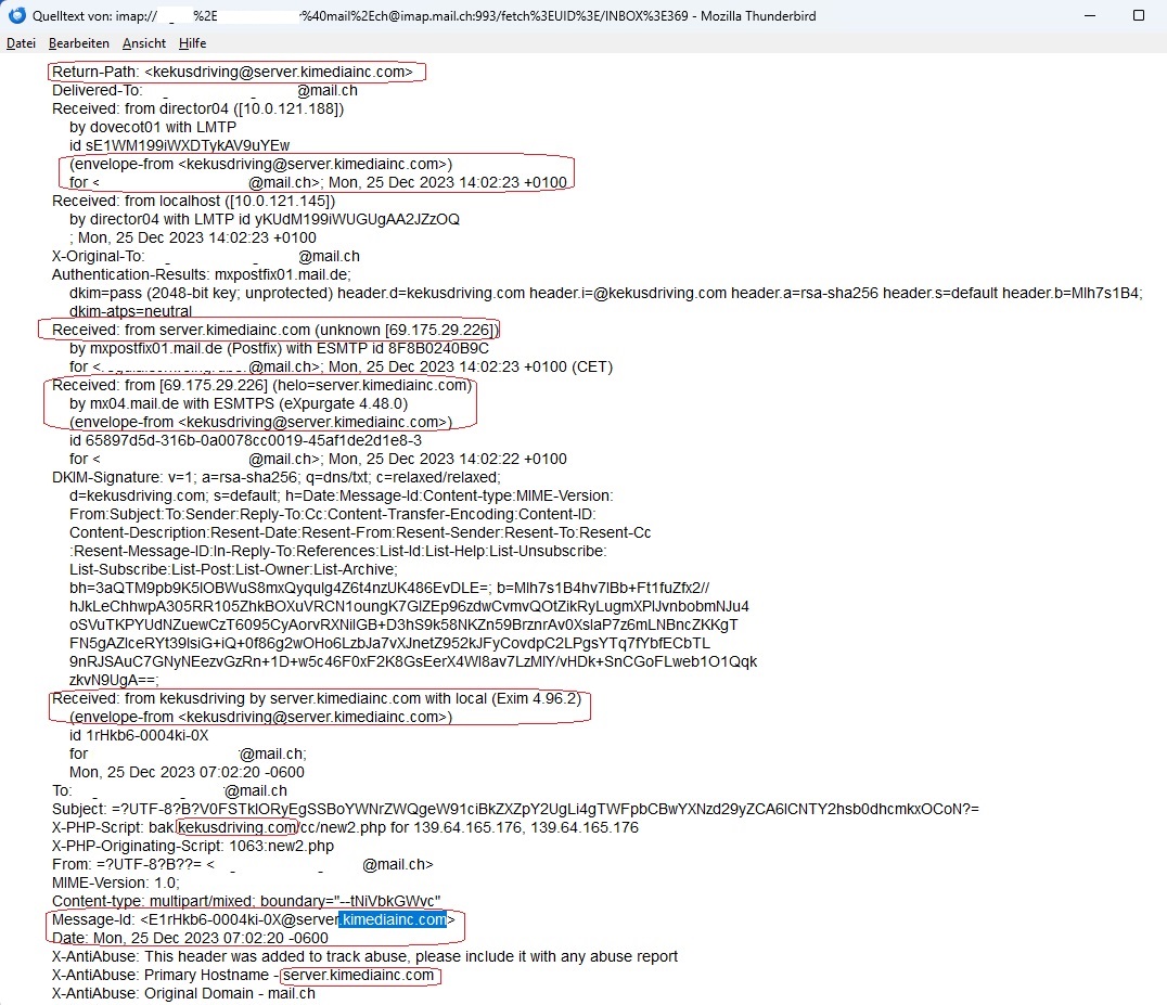 • ...Nachtrag: so hat eine der zwei Spoofing-E-Mails an verschieden E-mails _@mail.de ausgesehen und die andere war ähnlich: vom 25.12.2023 (sorry wegen der Qualität) und