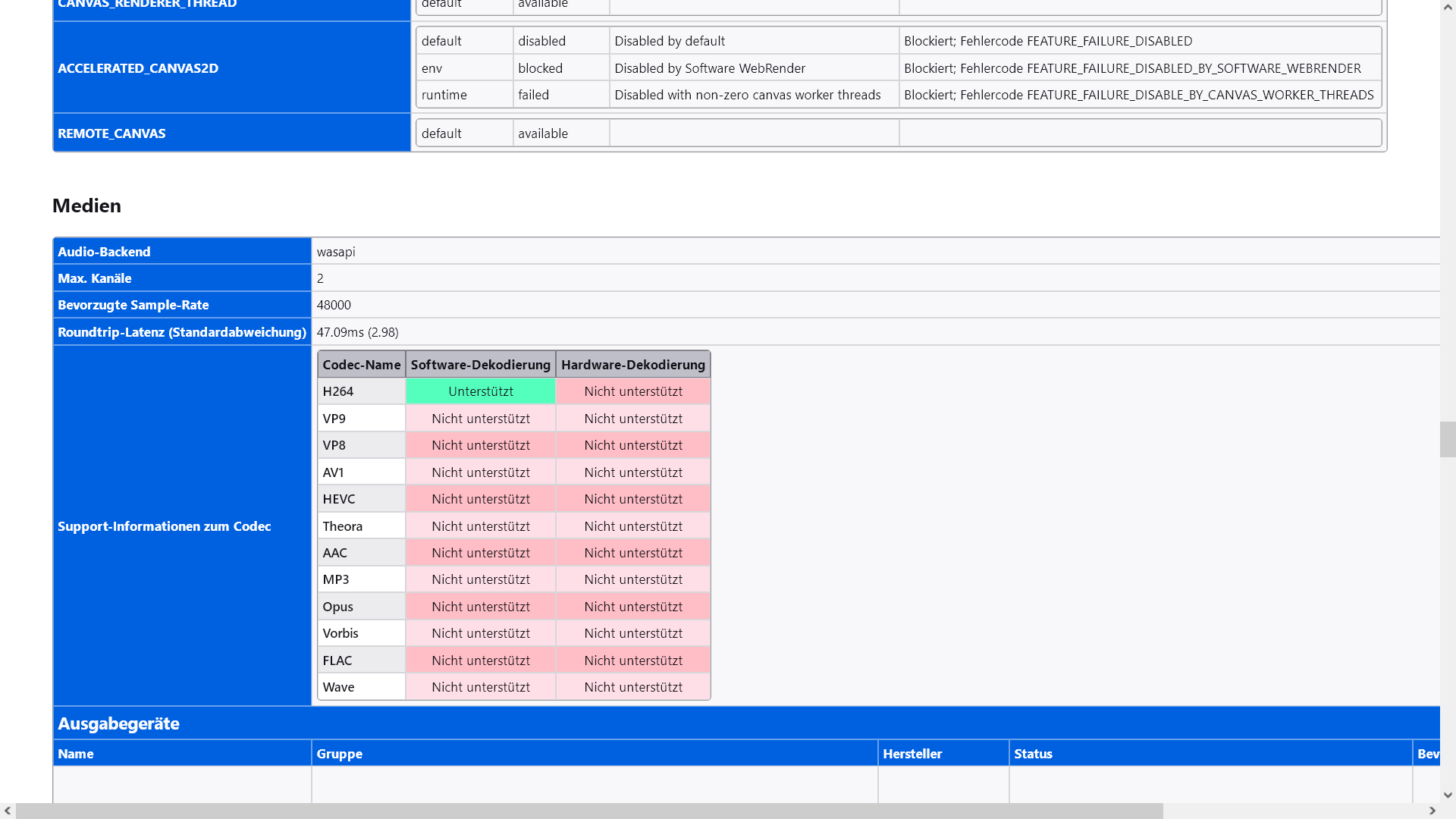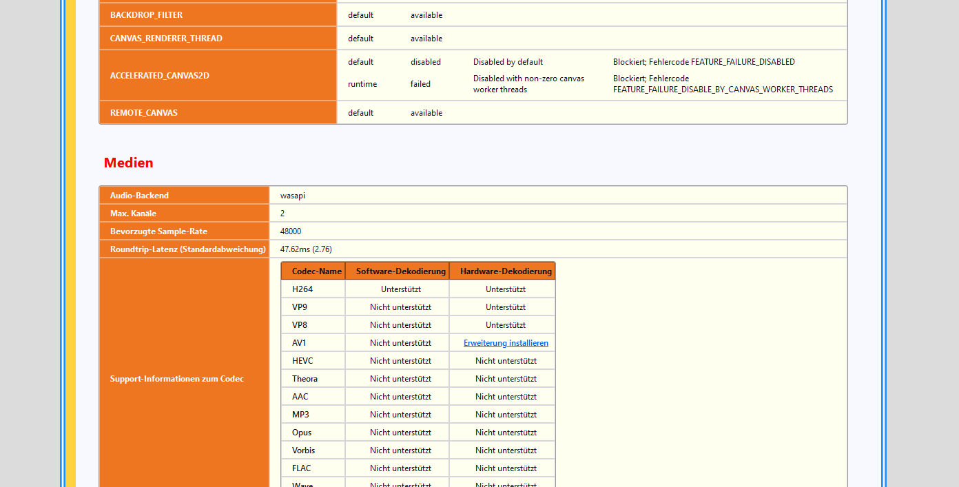 about:support - Version 122 und 123 - Rubrik "Medien" nach rechts erweitert