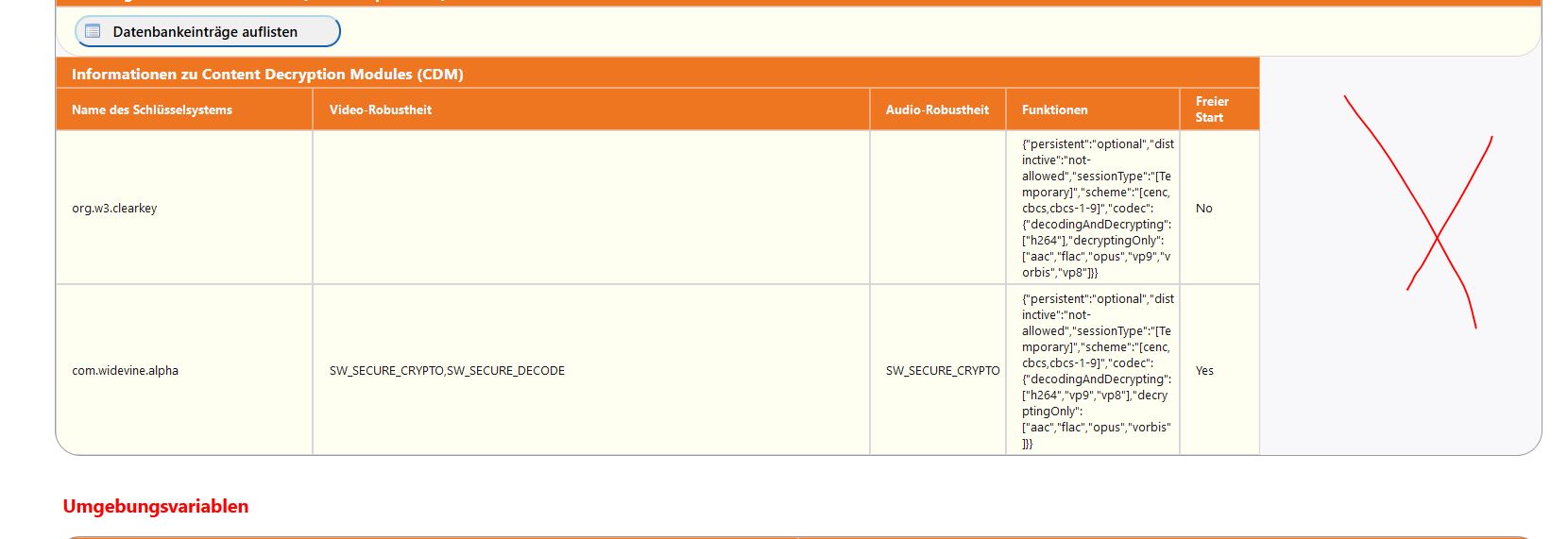 Damit kann die Spalte "Funktionen" im Abschnitt "Informationen zu Content Decryption Modules (CDM)" dann schmaler werden und die ganze Tabelle paßt wieder.