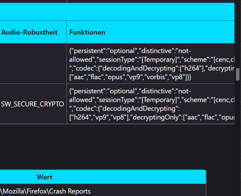 Die Tabelle "Grafik" ist eine andere als "Medien", "Umgebungsvariablen" und "Experimentelle Funktionen" sind auch wieder jeweils eigene Tabellen