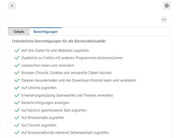Zudem hat es sehr viele Berechtigungen. Ist es von Firefox? Wenn nein, wie werde ich es los? Und hat es etwas mit meinen anderen Problemen zu tun?