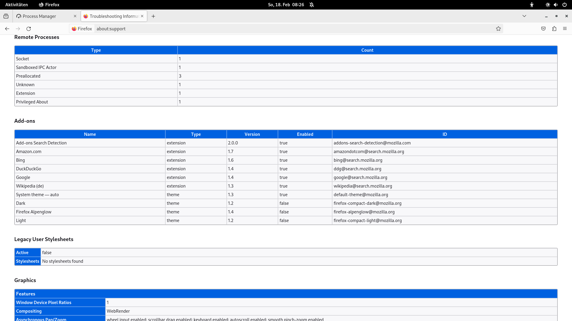 Hat jemand eine Idee was folgendes bedeuten könnte unter about:support: Externe Prozesse: Unbekannt / Remote Processes: Unknown