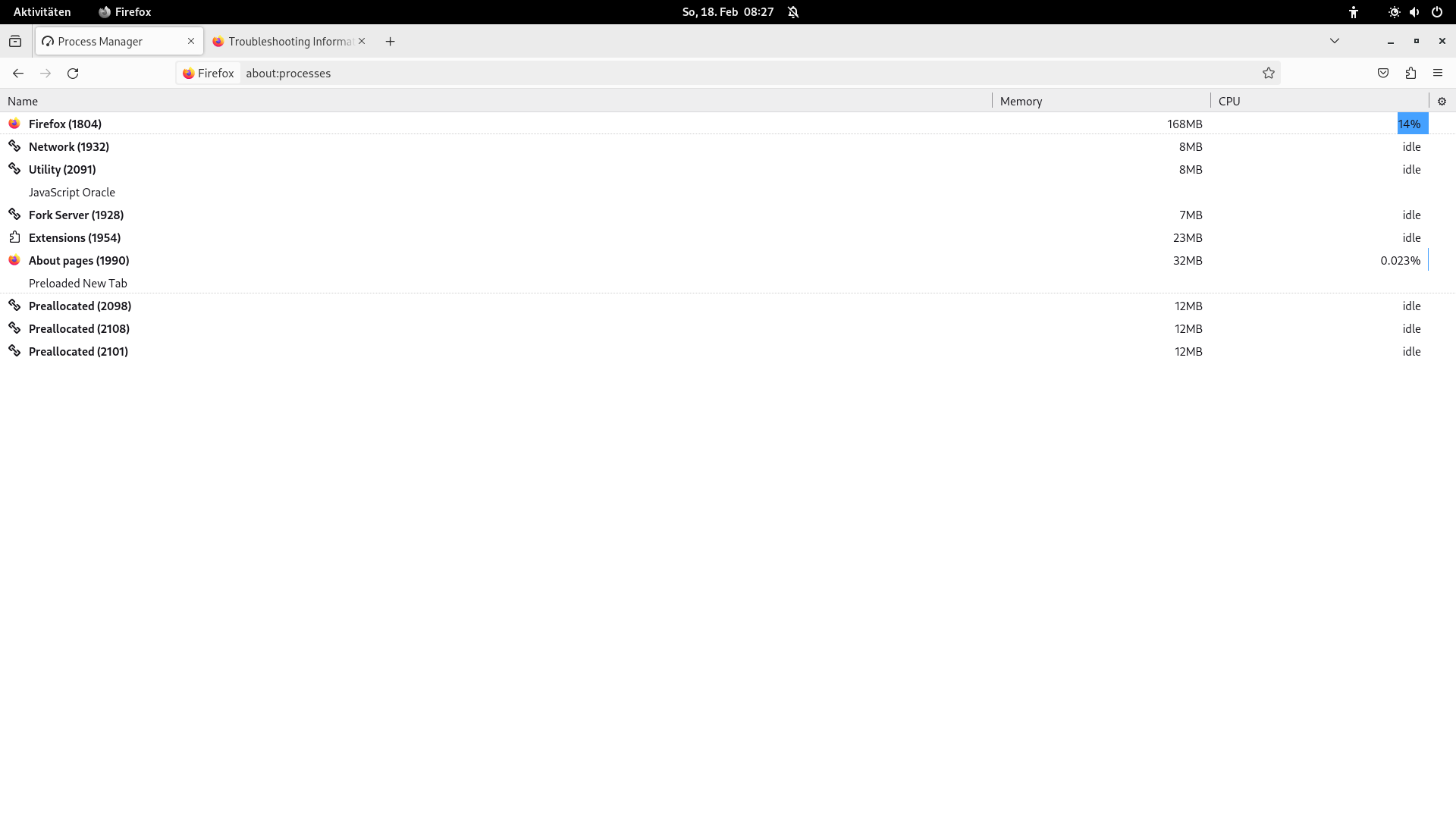 Unter about:processes erscheint noch ein "Fork Server", den ich sonst in den andere Distributionen nicht sehe.