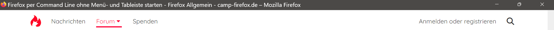 ich nutze als VNC-Client noVNC, der kein eigenes Fenster mitbringt, sondern im Browser geöffnet wird. Durch die Menü- und Tableiste (die ich aber beim normalen browsen nicht missen möchte) geht hier einiges an Anzeigeplatz verloren. Ist es daher möglich Firefox temporär (also z. B. über einen Kommandozeilen-Parameter) einmalig nur mit der Fensterleiste ganz oben aber sonst undekoriert zu starten?