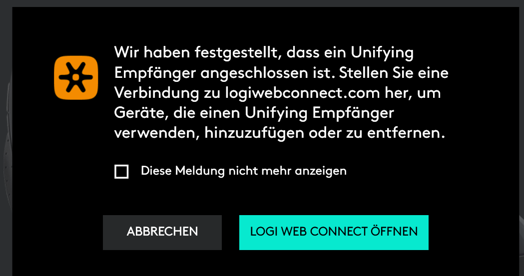 für eine Bekannte wollte ich eine separate Tastatur an ihren Laptop anschließen, was ja mit dem Empfänger, den sie für die Maus benutzt, möglich sein soll. Ich habe das an meinem Laptop ausprobiert, habe die Software von Logitech heruntergeladen, mich angemeldet und bekam dann auf der Startseite folgende Meldung