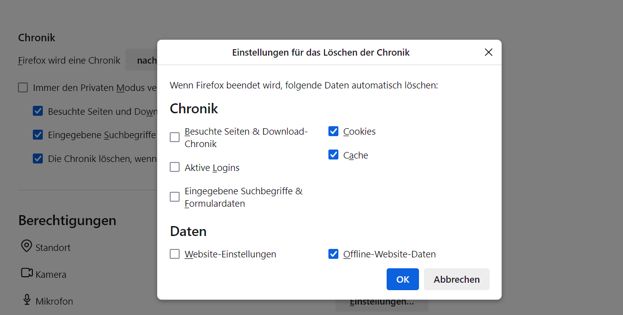 den Firefox benutze ich meist im privaten Modus. Damit ich für einige wenige Seiten angemeldet bleiben kann, habe ich versucht, für die Cookies dieser Seiten Ausnahmen anzulegen.