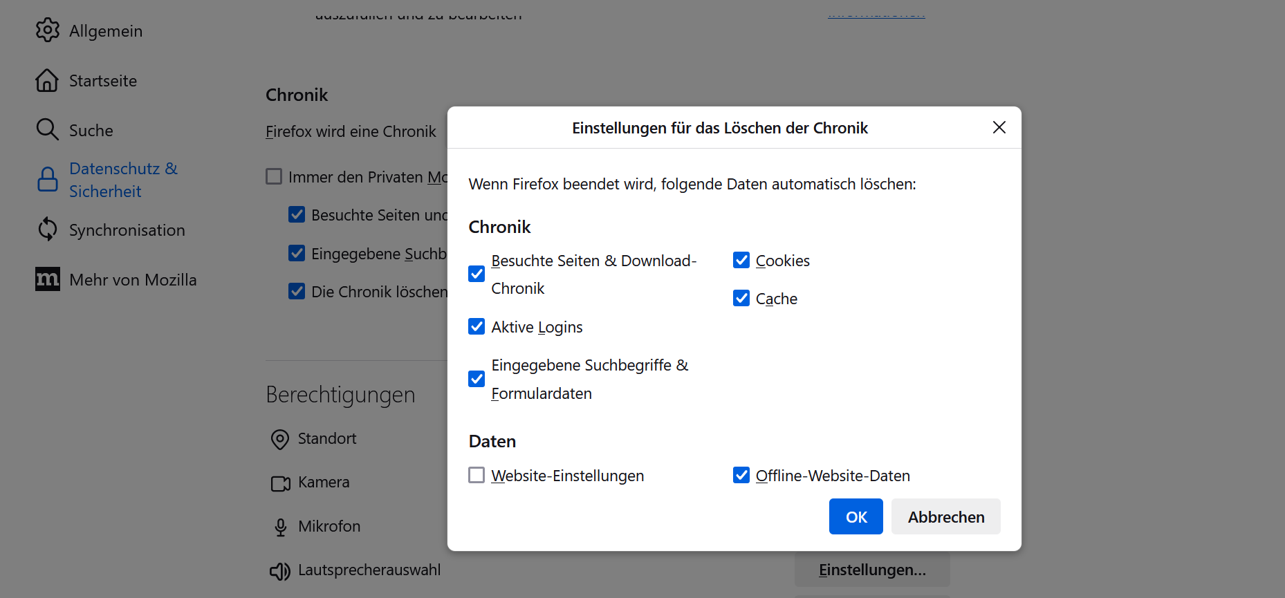 den Firefox benutze ich meist im privaten Modus. Damit ich für einige wenige Seiten angemeldet bleiben kann, habe ich versucht, für die Cookies dieser Seiten Ausnahmen anzulegen.