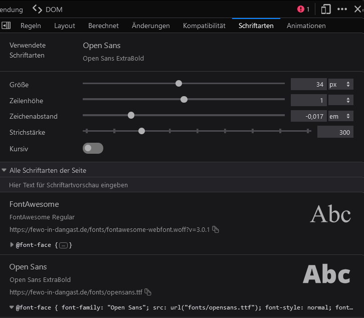 ABER in anderen Browsern, zB Chrome oder Edge (auch auf dem FF auf meinem MacBook) wird es richtig angezeigt, die selbe Seite, nämlich so (Open Sans eben):![]()