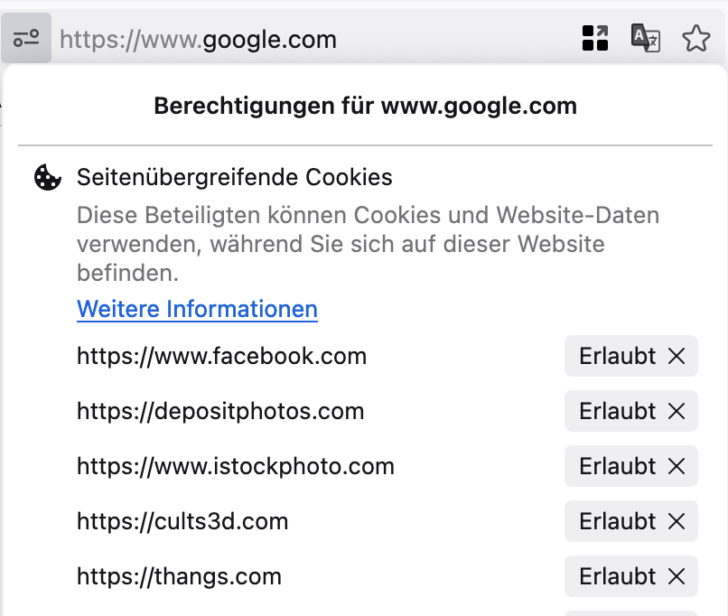 Firefox speichert seitenübergreifende Cookie Berechtigungen