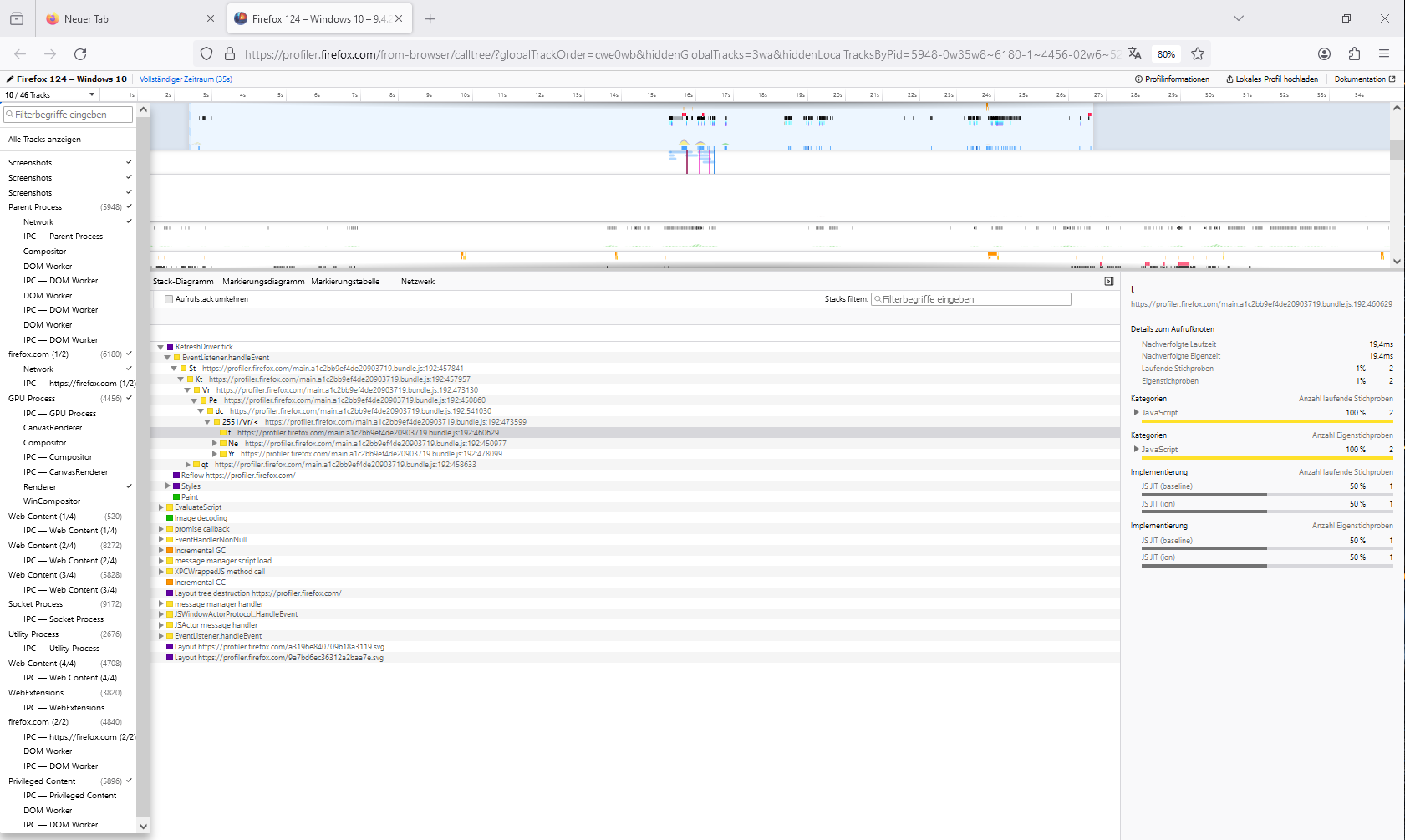 dann den Profiler gestartet, die URL firefox.com habe ich zumindest nicht bewusst eingetragen.
