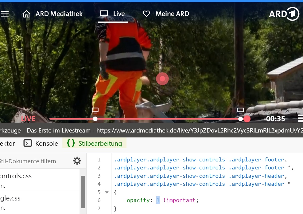 Hat aktuell noch jemand das Problem, dass bei ARD Livestream keine Steuerelemente mehr angezeigt werden?