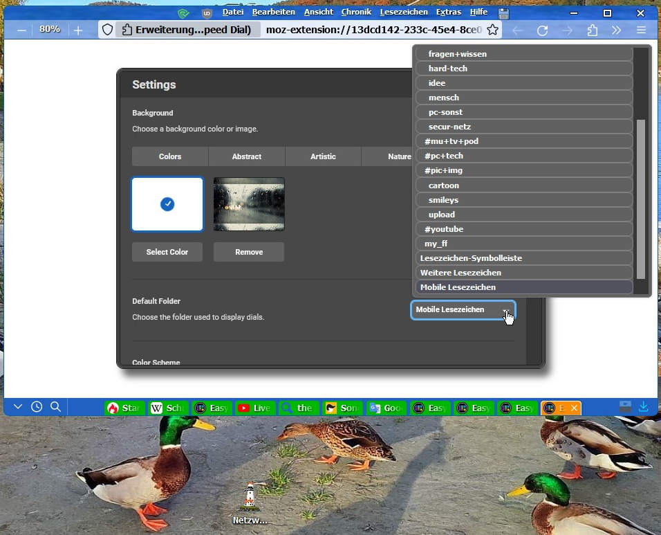 Dies entspricht auch nahezu perfekt meinen Vorstellungen, abgesehen von dem "Neuen Tab", der beim Start von Firefox angezeigt wird.