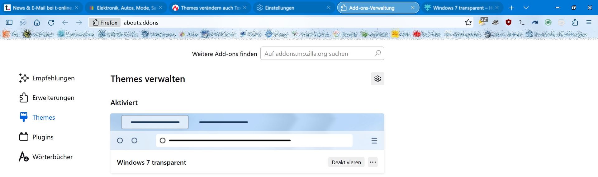 ich habe jetzt mal div. Themes (direkt von Firefox) installiert/optisch getestet und bei allen hat sich die Schriftfarbe und insbesondere die Schriftschäfte der Tableiste auch mit verändert. Die Schrift wird immer leicht unscharf.