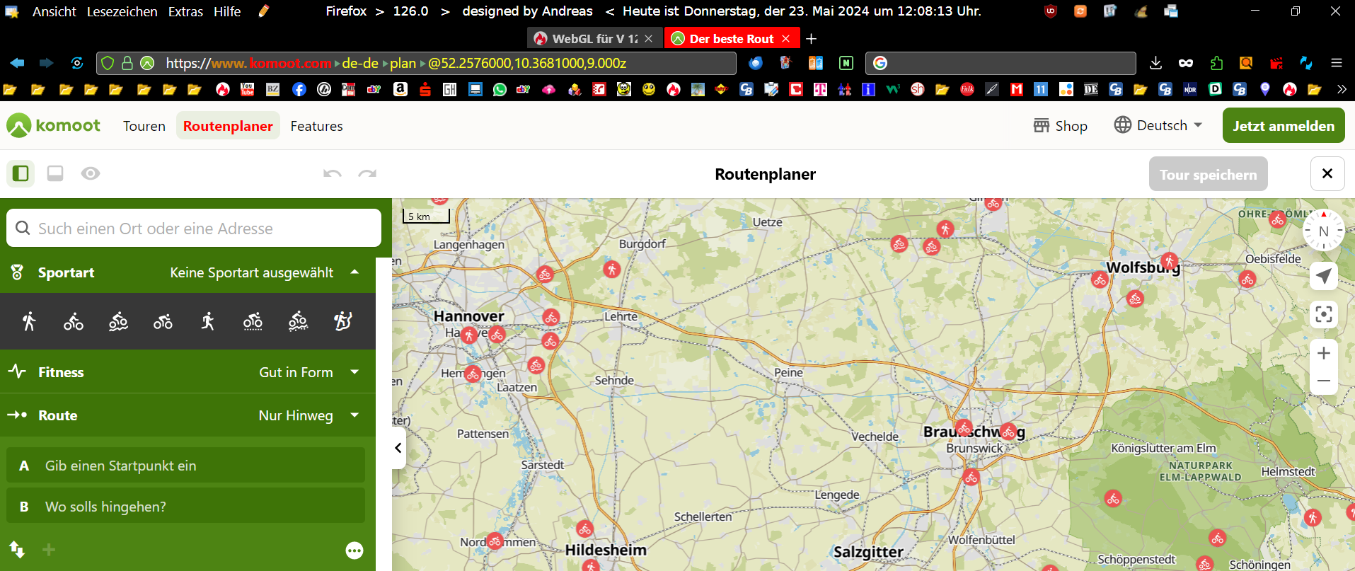 Im Firefox Config-Menü kann ich WebGL zwar schwach sehen aber nicht verändern. Es ist mit einem Schloßsymbol gesichert. An meiner Grafikkarte kann es nicht liegen, da Komoot in anderen Browsern, z. B. Chrome, Microsoft Edge, etc. einwandfrei funktioniert.