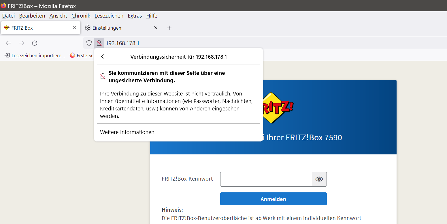 Fritzbox Oberfläche erreichen nach Neuinstallation Windows 11