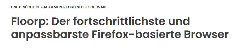 Kennt hier jemand den Floorp Browser und hat damit Erfahrung? Der Browser basiert auf Firefox ESR und bietet viele individuelle Einstellmöglichkeiten, z.B. die Platzierung der Tabbar, Mausscrollen der TAB's, etc. Auch die Oberfläche bietet einige Auswahlmöglichkeiten.