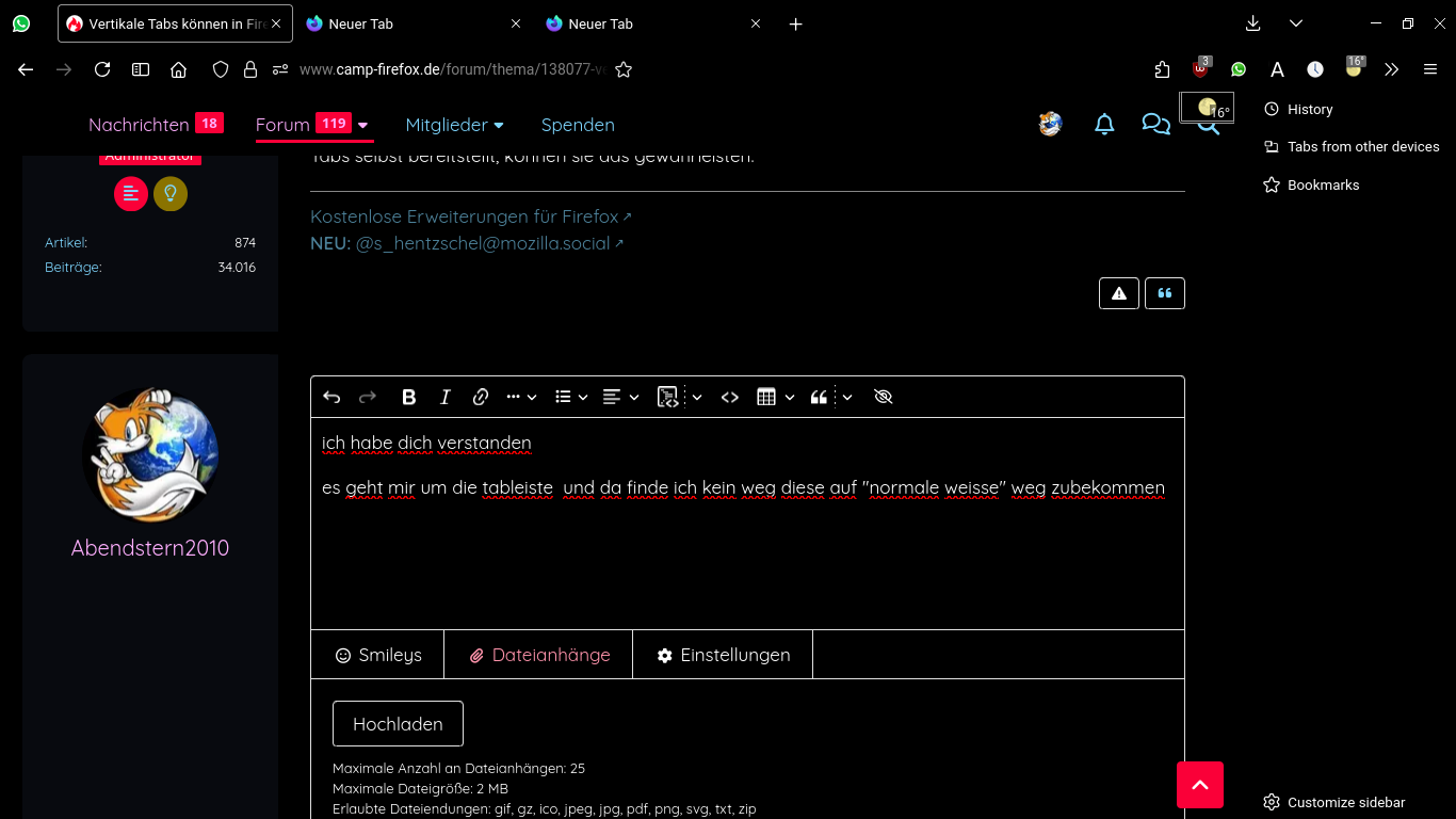 ZitatVertikale Tabs sind eine der meistgewünschten Funktionen der Firefox-Nutzer. Nutzer einer Nightly-Version von Firefox können jetzt eine frühe Implementierung testen.