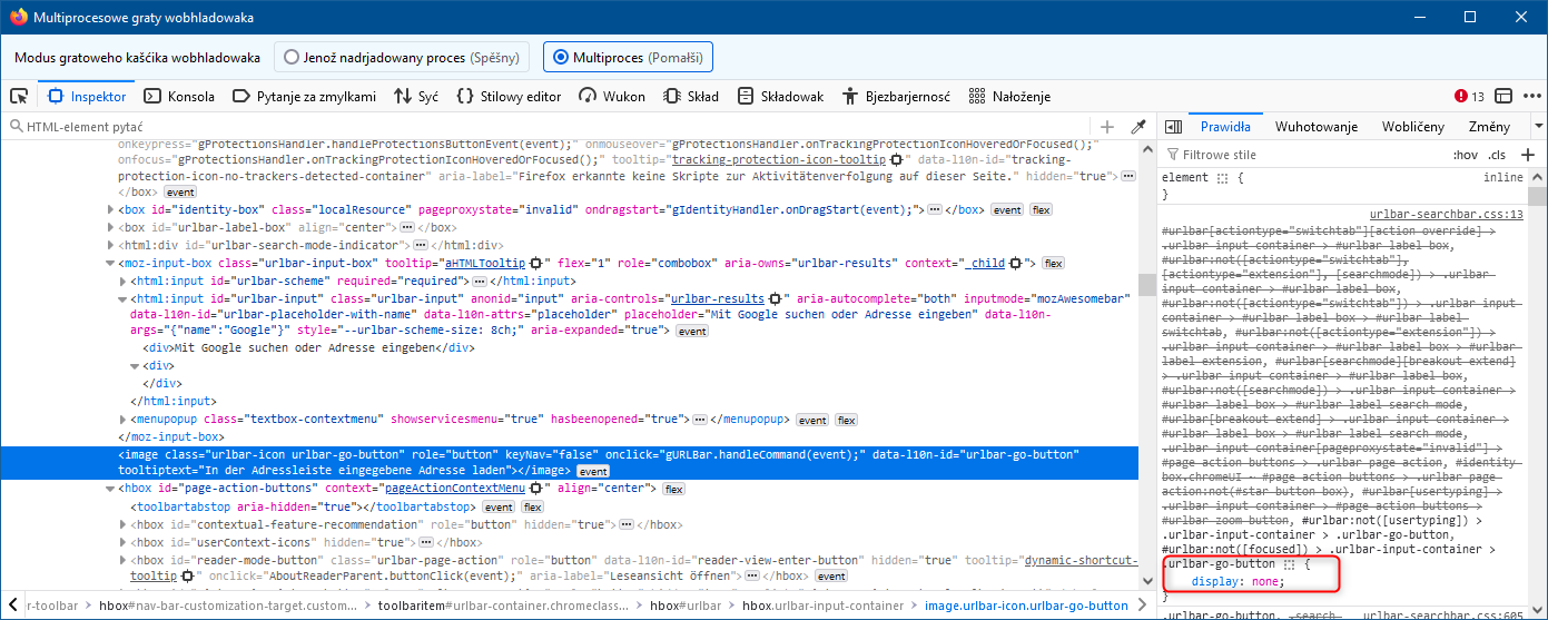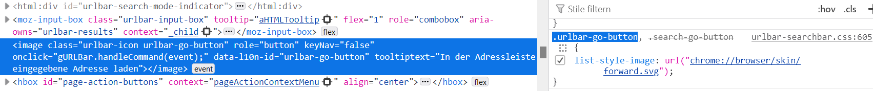 Das liegt wohl an der Regel display: none, die .urlbar-go-button standardmäßig mitgegeben wird.