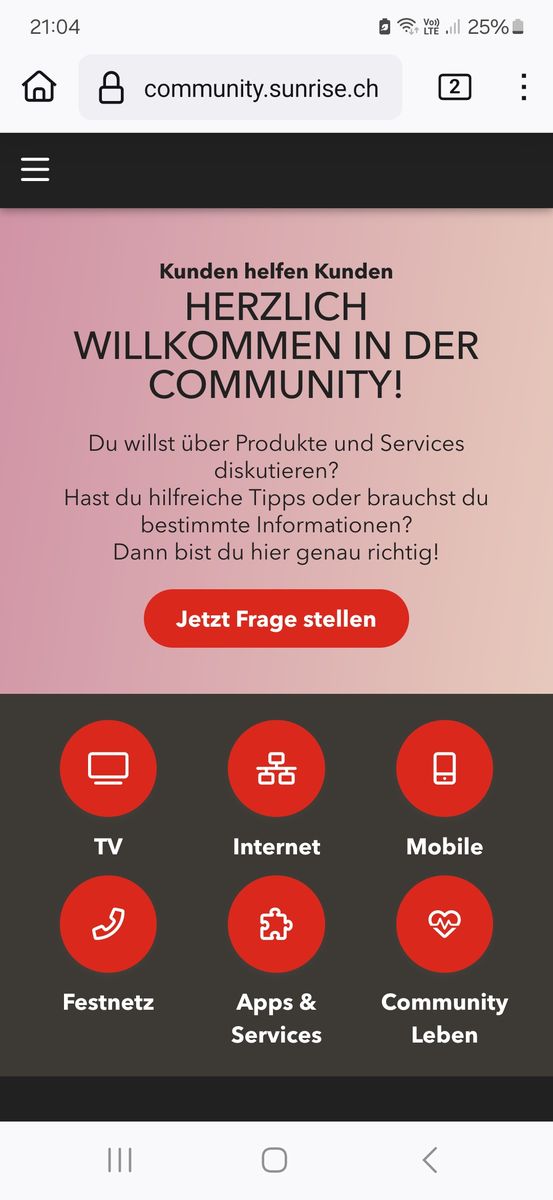 Beim Aufruf der Seite community.sunrise.ch habe ich folgenden Screen auf dem Smartphone: