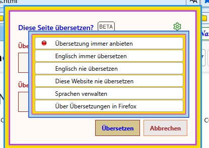 Immer wenn eine fremdsprachige Seite aufgerufen wird, dann öffnet sich auch gleich das Translations-Panel zur Auswahl der Sprachen.