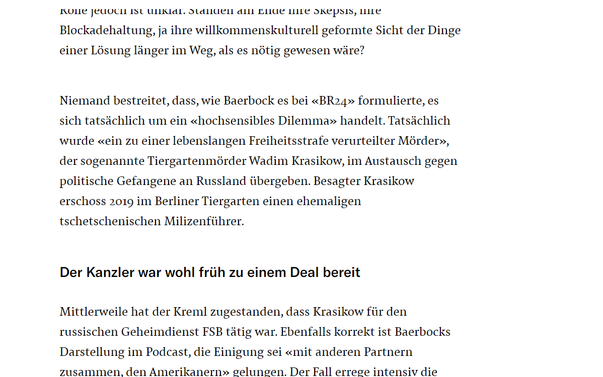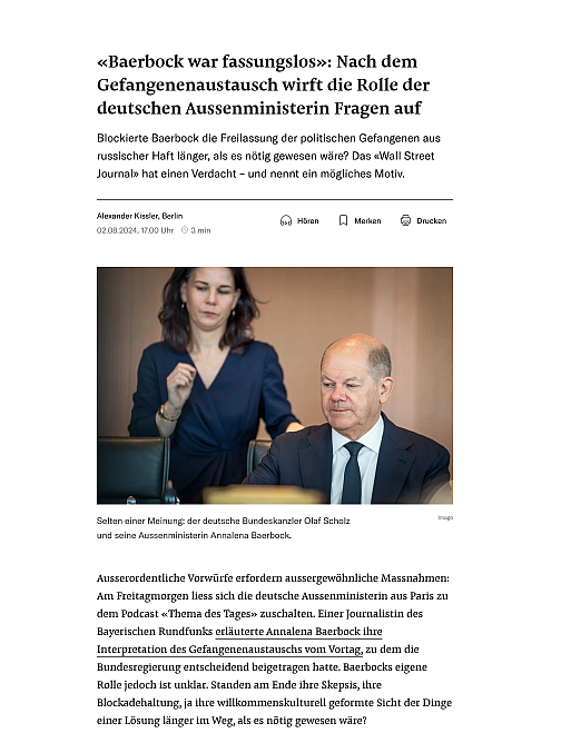 Blockierte Baerbock die Freilassung der politischen Gefangenen aus russischer Haft länger, als es nötig gewesen wäre? Das «Wall Street Journal» hat einen…