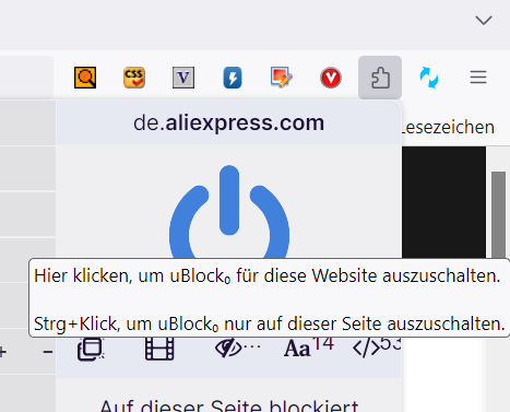 wie kann ich das ändern mit Aktiviertem uBlock ?