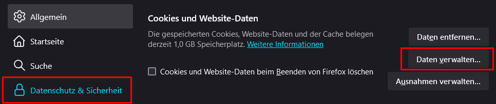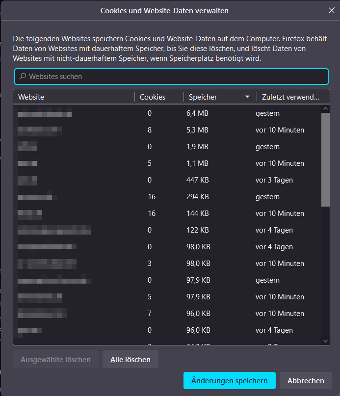 Cookies möchte ich nicht löschen, da ich die darin enthaltenen Einstellungen erhalten möchte. Außerdem brauchen die ja nicht viel Platz.