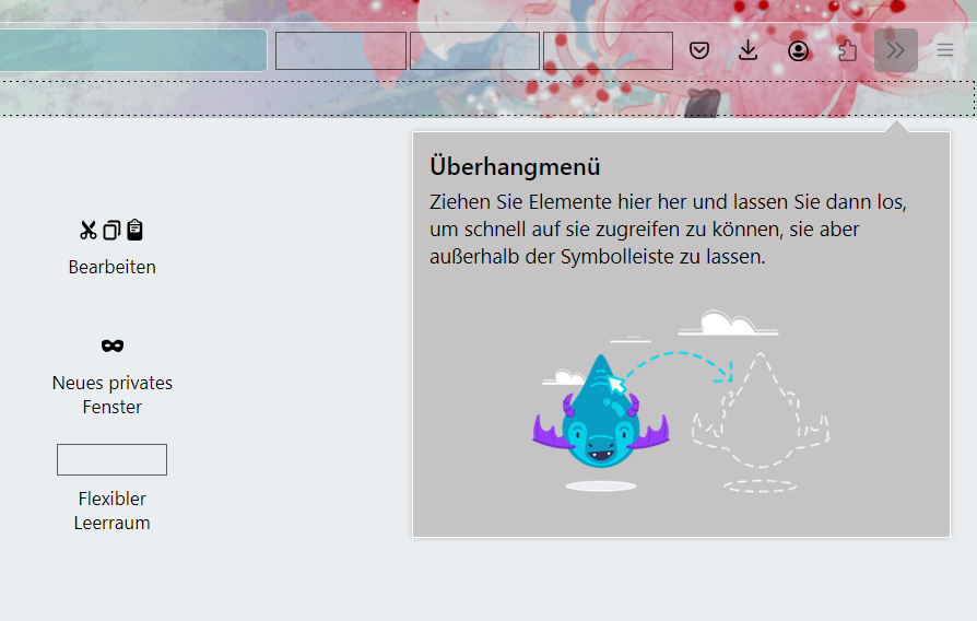 bin Umsteiger und freue mich u.a. über die Gestaltungsmöglichkeiten mit dem Themes. Ich habe auch was nettes gefunden, was allerdings vom rechten Ende der Adress-/Suchleiste halb verdeckt wird. Ich habe im Netz nach Lösungen gesucht, fand aber nur Infos über ältere Versionen, wo man in den Einstellungen z.B. Such-und Adressleiste trennen konnte.
