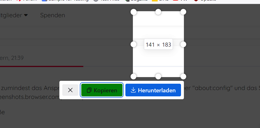 also zumindest das Ansprechen dieser Elemente ließ sich erreichen über "about:config" und das Setzen des Wertes "screenshots.browser.component.preventContentEvents" auf "false".Grüße