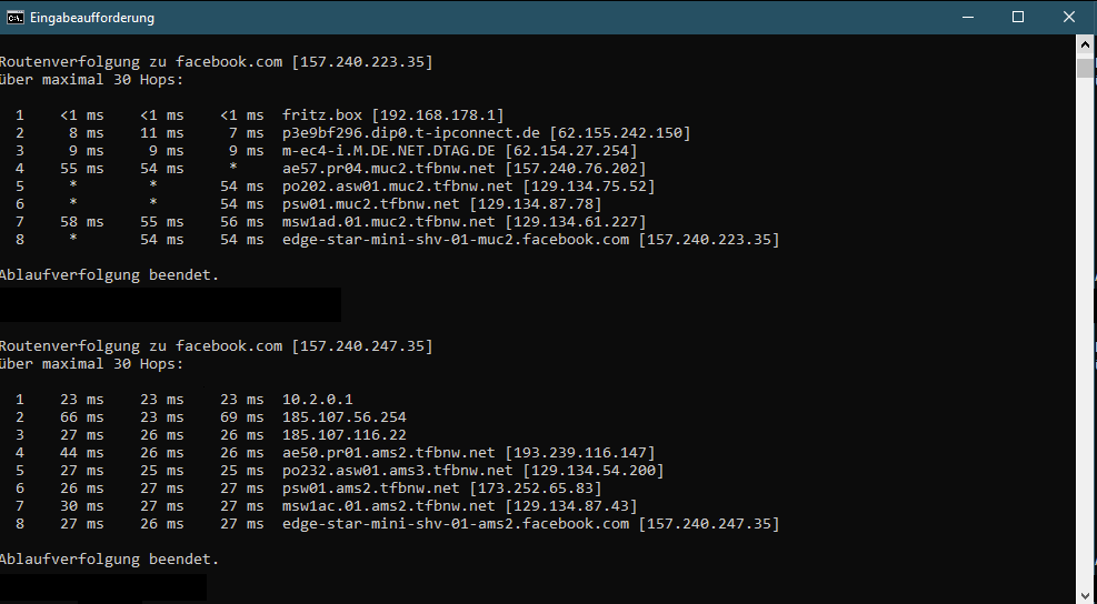 Habe jetzt mal tracert zu facebook.com aufgerufen: