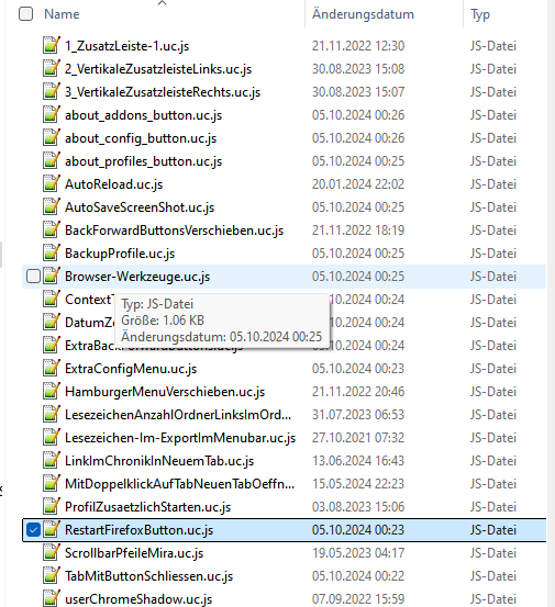 Das sind all meine Scripte und der Markierte ist für FF restarten mit cache leeren..
