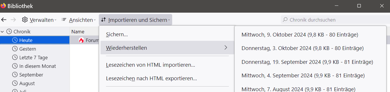 • Wiederherstellung der Lesezeichen