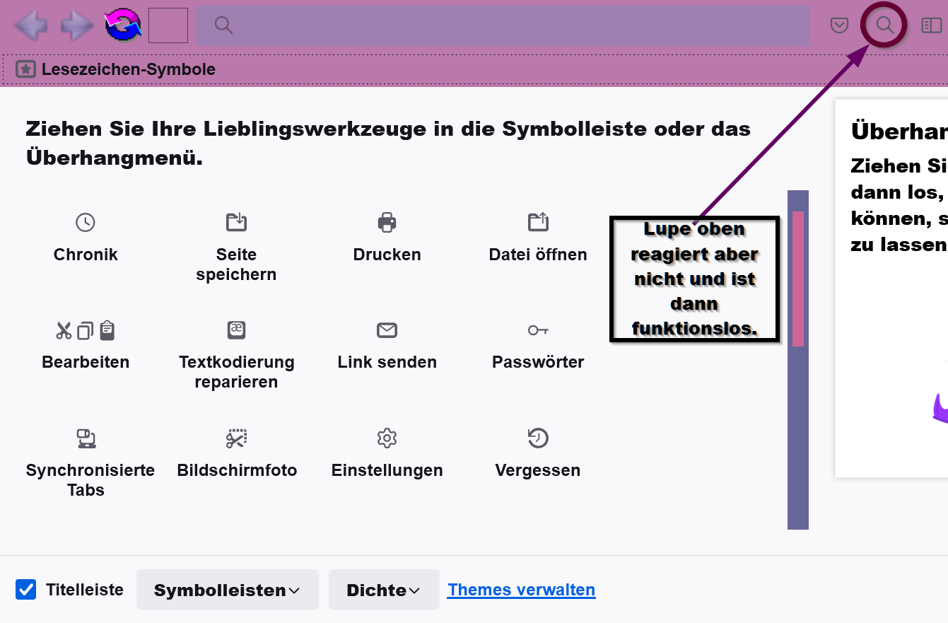 Wobei der völlig überflüssig ist, denn die Suchleiste lässt sich mit der Maus verschieben.