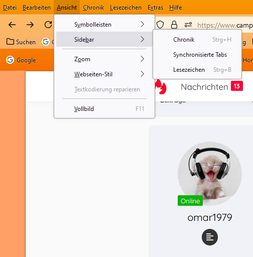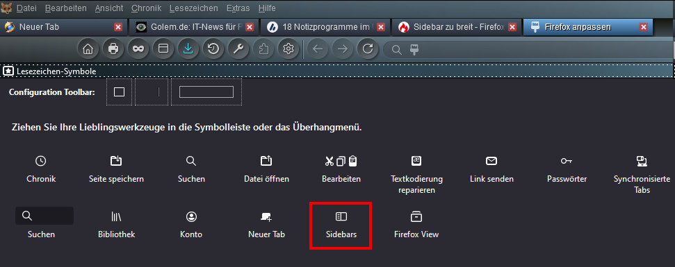 nachdem sowohl an Firefox wie auch an meinem PC einiges nicht mehr stimmte, habe ich Windwos zurückgesetzt und alles neu gemacht. Bisher klappt alles gut mit Firefox, außer der Sidebar. Die ist außergewöhnlich breit und ich finde keine Einstellung, bei der sie kleiner wird. Kann mir jemand sagen, wie man das hinbekommt?