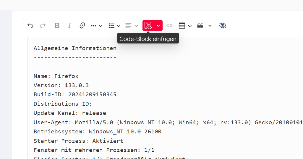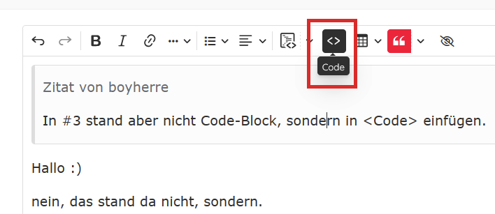 • In #3 stand aber nicht Code-Block, sondern in <Code> einfügen.