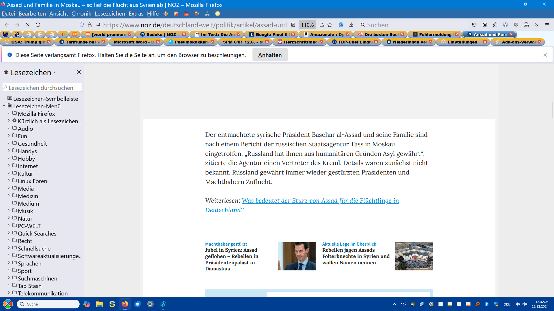 Diese Meldung kommt umso häufiger, je mehr Tabs ich geöffnet habe. Das Problem verschwindet auch nicht, wenn ich FF im Fehlerbehebungsmodus starte. Starte ich FF mit nur einem Tab, passierte das bisher noch nicht. Stelle ich die Hardwarebeschleunigung aus, wird es noch schlimmer. Bei Edge tritt das Problem auch bei vielen Tabs nicht auf.
