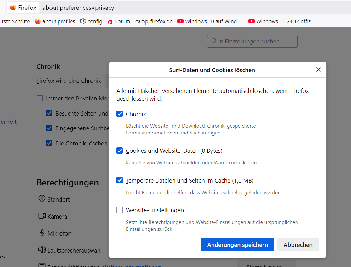"Vorherige Fenster und Tabs öffnen" ist natürlich aktiviert.