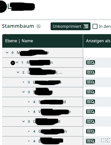 Dieses "Aufklappen" (durch klicken auf das +-Symbol mit dem Kreis 'drumrum) dauert auf einem Rechner (LM21.1 Xfce) im Firefox 133.0.3 30-45 Min. und im Chromium klappen die Ebenen 2 - 4 ohne Wartezeit direkt auf. Auf einem anderen Rechner (ebenfalls LM21.1 Xfce) klappen die Ebenen 2 - 4 im Firefox 133.0.3 ohne Wartezeit direkt auf (so wie es sein soll). Chromium wurde dort nicht getestet, da nicht erforderlich.