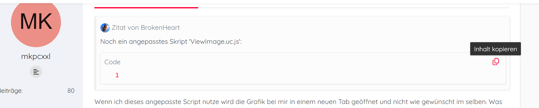Darum Skripte/Codes etc. immer über diesen Button kopieren: