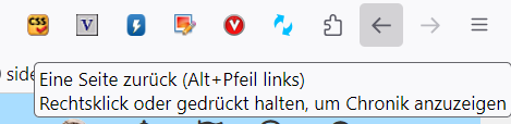 • Wenn das bei mir richtig funktioniert, dann werden in der Symbolleiste ein Rückwärts- und ein Vorwärtspfeil angelegt. Per Mittelklick kann man sich eine Liste von Seiten des jeweiligen Buttons anzeigen, wo man dann auswählen kann, wohin man will.