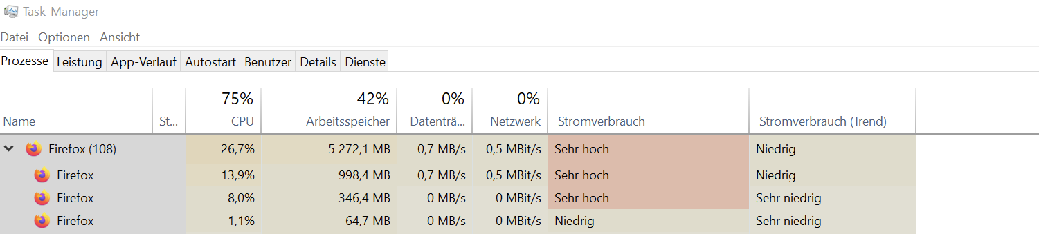 Außerdem sehe ich im TaskManager: